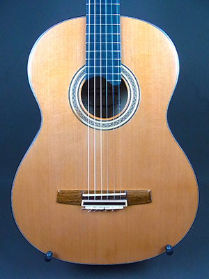 Model CLの弦長630mmショートスケールモデルです。手の小さな女性やお子様,ご高齢の方などで,ノーマルスケールでは,左手の押弦が難しい場合に最適です。現在,標準的なクラシックギターの弦長は650mmですが,最近では多くの製作家により弦長が短いショートスケールモデルが作られています。弦長640mmですとノーマルスケールと比較して,弦長全体で10mm短く,ネックの長さ(0~12フレット)では,その半分の5mm短くなります。このモデルでは,弦長をノーマルより20mm短い630mmにし,ネックの長さ(0~12フレット)が標準スケールと比較して10mm短いため,よりはっきりとショートスケール感を実感できます。